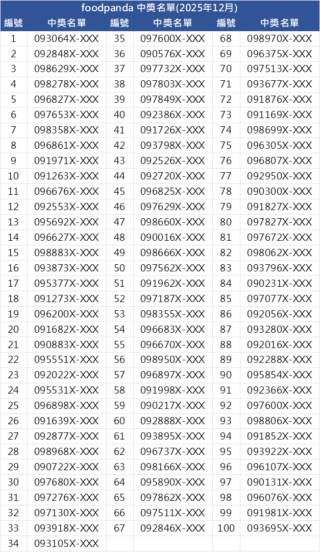 【01月中獎名單】