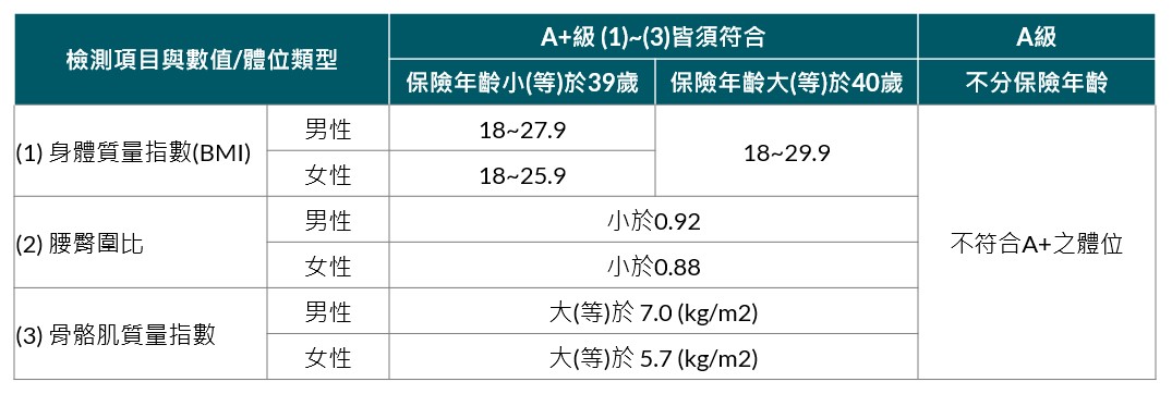 (二) 安達人壽將依「身體組成分析檢測」結果審核對應之體位,並按投保時之保險年齡 計算次一保險單年度之保險費。